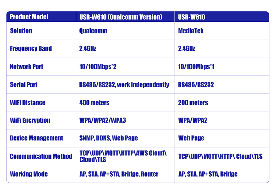- The USR-W610(Qualcomm version) provides a wealth of networking methods to meet customer networking needs.